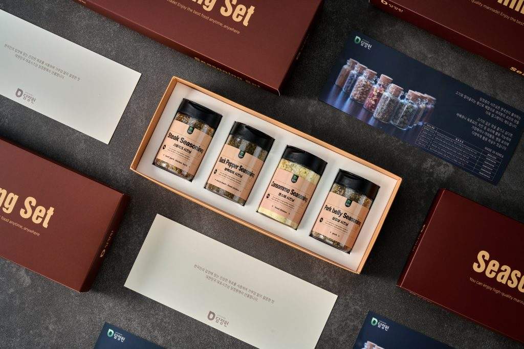 당사의 담정원 시즈닝 4종 시리즈는 신혼부부의 니즈에 맞추어 젊은 감각의 맛을 표현해내며 선물용으로 고급스러운 제품군을 제공해드립니다.